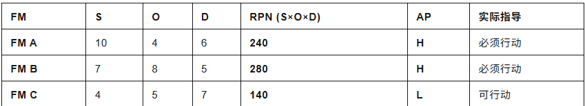 在这个案例中,如果使用旧版 RPN,FM C (140) 比 FM A (240) 更低,但都高于 100 阈值,可能会导致团队将 FM C 视为高风险。而 AP 机制清晰地表明:FM C 属于 L 级,其风险可接受。这使得风险聚焦到 S=10 或 S=7/O=8 的真正高风险项上,大幅提升了 FMEA 的效率有效性
