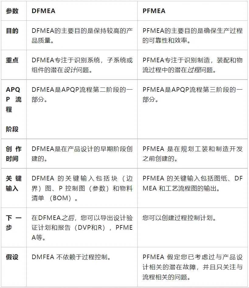对于结构分析,同为FMEA分析的DFMEA和PFMEA,由于分析对象不同,进行结构分析的目的也有所异同:
