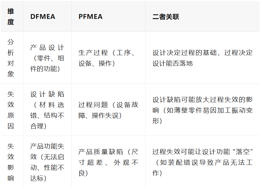 DFMEA 聚焦设计阶段的“事前预防”,而 PFMEA 强调生产阶段的“过程控制”,两者协同确保产品全生命周期的质量与可靠性。